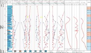 Figure  3.  Lithological and geochemical characteristics of Mao-1 member in Huayingshan section, Sichuan Basin (δ13C-δ18O, Mg-Ca content, and paleo-seawater temperature data from reference [17])