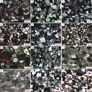 不同的物质来源和不同的沉积环境下形成的砂岩在碎屑骨架颗粒、初始孔隙度、岩相及孔隙流体等性质上存在明显的差异,进而影响砂岩的成岩作用类型与演化过程、孔隙发育特征和物性特征[1011]。而同一地区、同一时期的砂岩因岩石组构特征的不同其成岩作用、储层演化存在差异性,造成储层的致密化过程与致密储层成因的不同,同时也是造成储层非均质性的关键因素之一[1215]。因此,对于低孔—低渗的致密砂岩储层来说,探究基于砂岩岩石组构差异的成岩演化过程是分析致密砂岩储层致密化过程、形成机理与优质储层分布的关键。