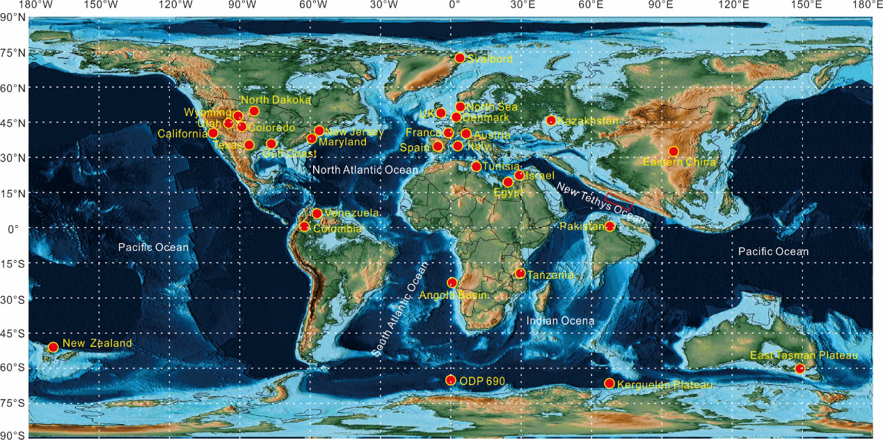 图3 PETM水循环研究点分布图(修改自Carmichael et al., 2017)