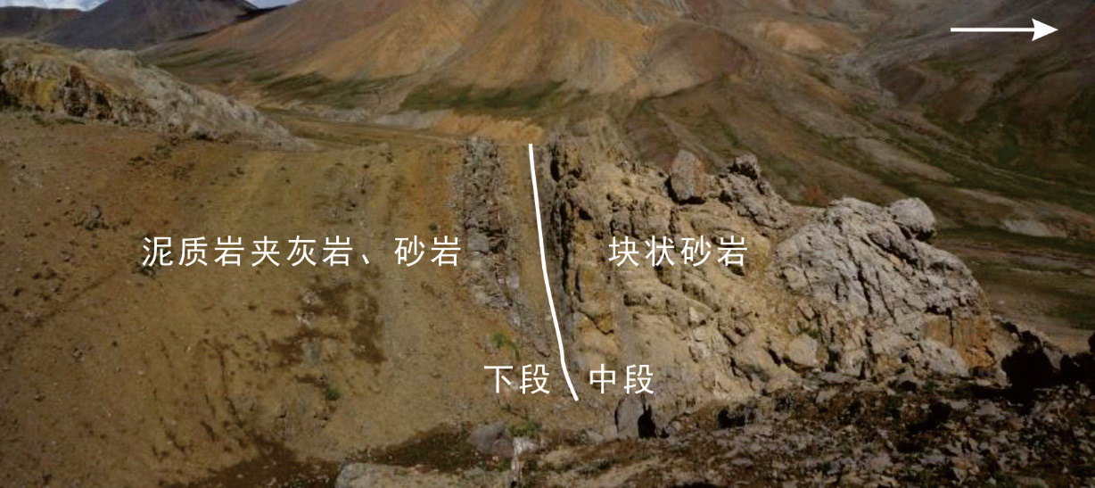 图4 藏南日喀则弧前盆地古近纪加拉孜组下段、中段野外照片(Jiang et al., 2021)