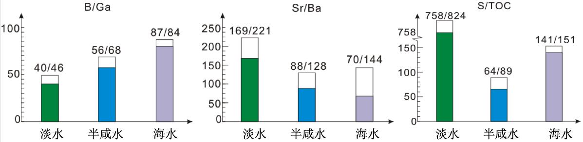 2.“将今论古”:B/Ga、Sr/Ba、S/TOC对古盐度的指示