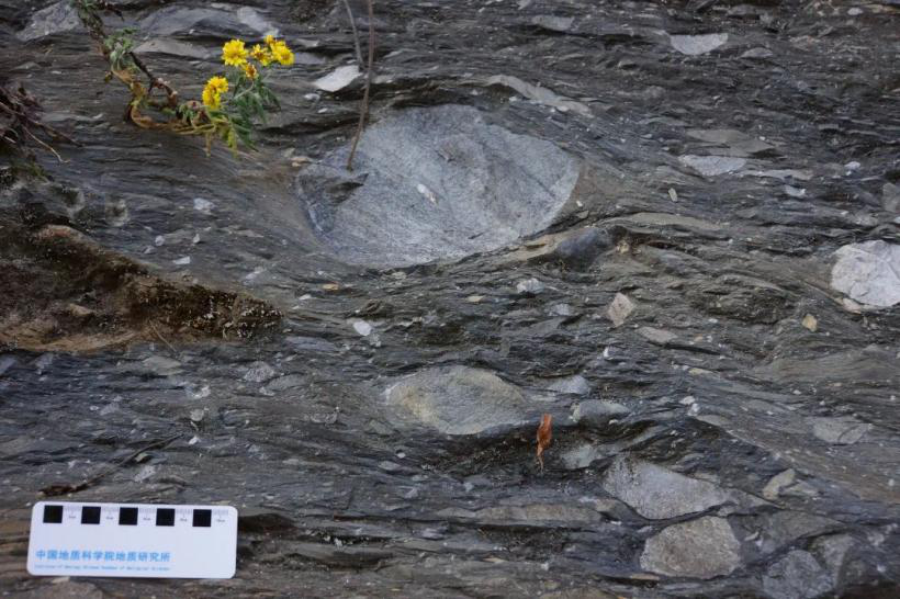 图14 神农架的海底冰碛岩(含坠石的纹泥)