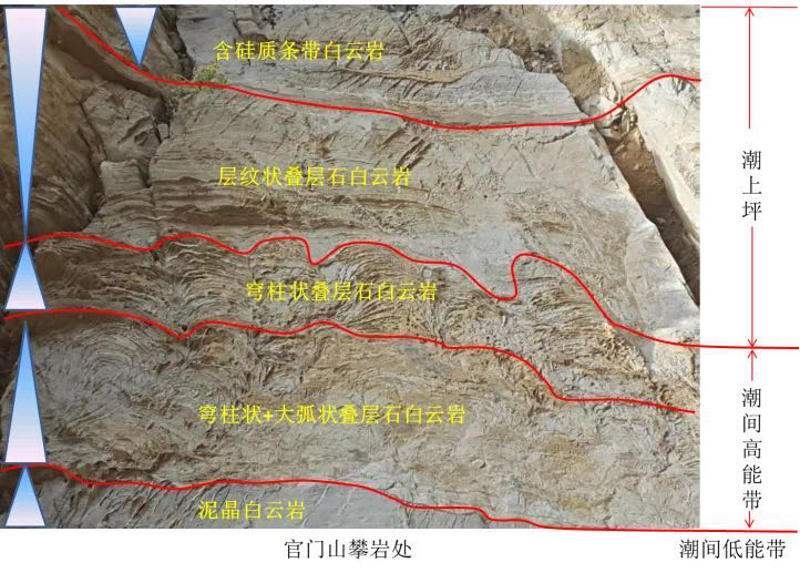 图10 神农架官门山石槽河组叠层石纹层形态和韵律结构