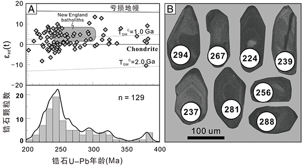 图6 郎杰学群中晚古生代–早中生代锆石的年龄特征及CL图像(修改自Wang et al., 2016)。