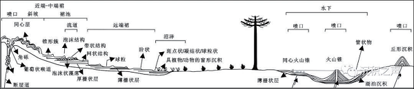 3)相变快速,热泉水的流动会导致水温的下降,从而出现沉积物从高温环境向常温环境转变。地形的影响也会导致沉积相的快速转换。根据热泉喷口到远端裙距离和温度差异,可将热泉钙华沉淀环境划分为四类:喷口区、邻近斜坡、中裙和远端裙-沼泽(Guido and Campbell,2011)(图3);