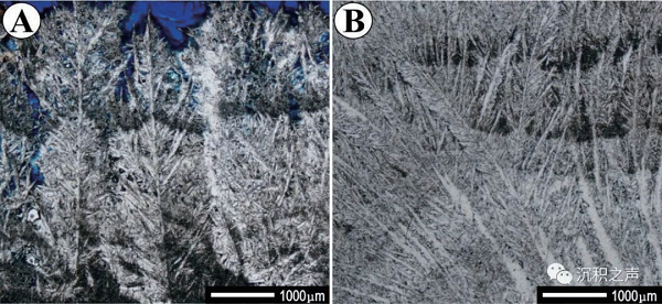图4云南省腾冲市朗蒲热水塘古热泉钙华中的树状方解石(Luo et al.,2019)