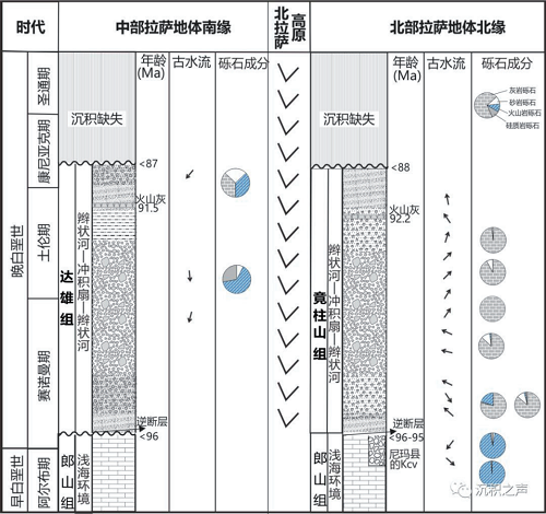 图4晚白垩世同时同步演化的达雄组和竟柱山组,改自Lai et al.(2019)。