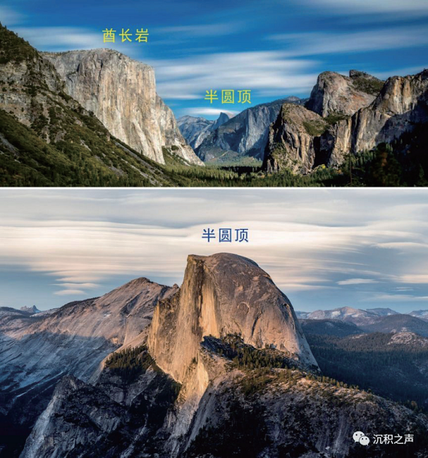 图3.美国加州优胜美地国家公园酋长岩(上图,来自https://www.visittheusa.com/)和半圆顶(下图,来自https://en.wikipedia.org/)