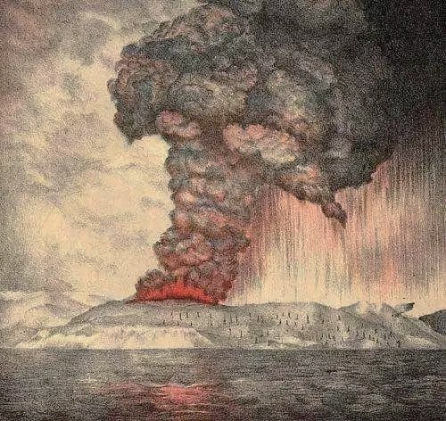 图1苏门答腊岛1815年坦博拉火山喷发素描图(引自网络https://www.sohu.com/a/216514796_608912)