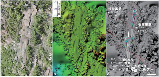 另外,在冰川的运动过程中,位于冰川底部的碎屑物和冰川融水一道,作为主要的剥蚀介质,在基底岩石上会形成了特殊的冰蚀构造以及冰蚀地貌,如冰溜面、刻痕、塑性锈模等。这种直接的地质证据相比较冰筏坠石而言,对这种特殊的大陆地貌的后期保存条件要求苛刻。