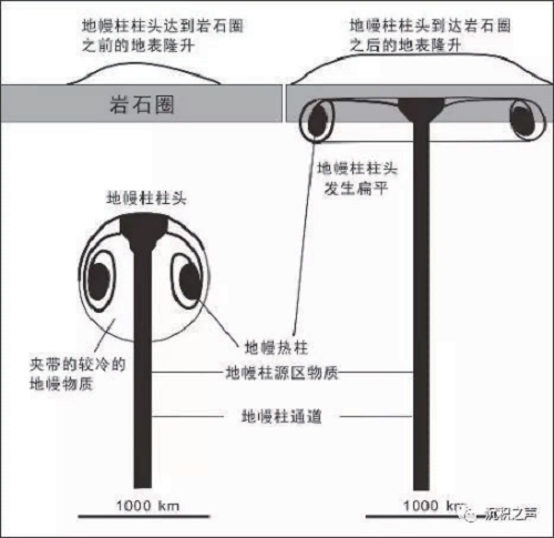图1地幔柱基本结构及其到达岩石圈前后